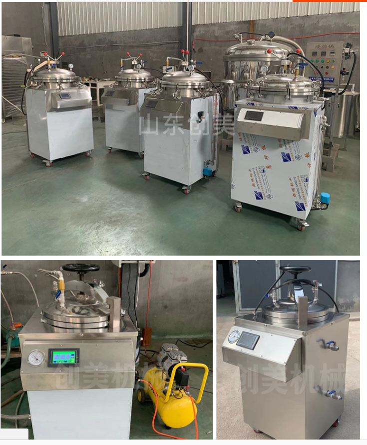 小型殺菌鍋:特經(jīng)過(guò)殺菌后,降溫冷卻時(shí),停止供應(yīng)蒸汽,將冷卻水壓入噴水管。由于鍋內(nèi)溫度下降,蒸汽冷凝,而使鍋內(nèi)力降低采用壓縮空氣的壓力來(lái)補(bǔ)償。