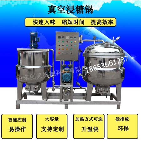 地瓜干浸糖鍋,真空滲透罐有100L至2000L不同容積,較小規(guī)格的滲透罐可與其配套部件共同制作在一個(gè)小型的平臺(tái)上呈機(jī)組形安裝使用及移動(dòng)都較為方便,稱為小型真空滲透罐機(jī)組,該設(shè)備可適用于學(xué)校、科研單位實(shí)驗(yàn)室研發(fā)新產(chǎn)品使用或產(chǎn)量不大的企業(yè)小試中試生產(chǎn)。
